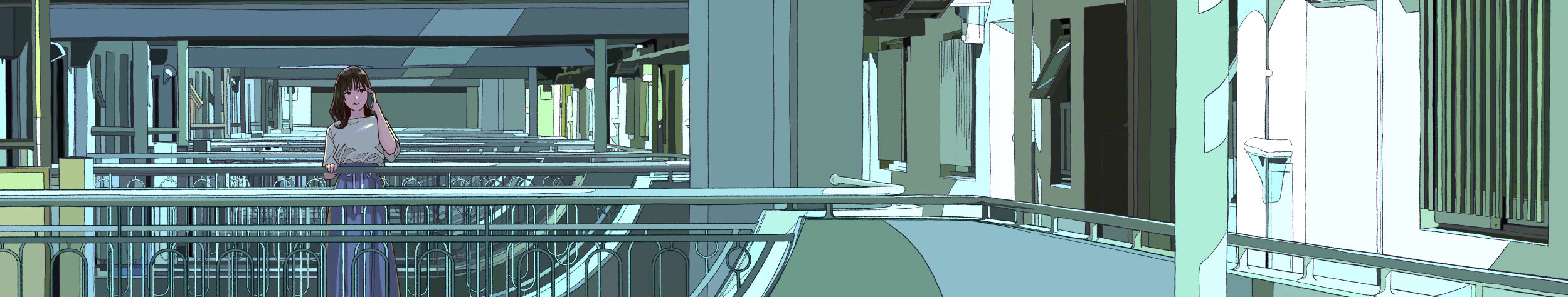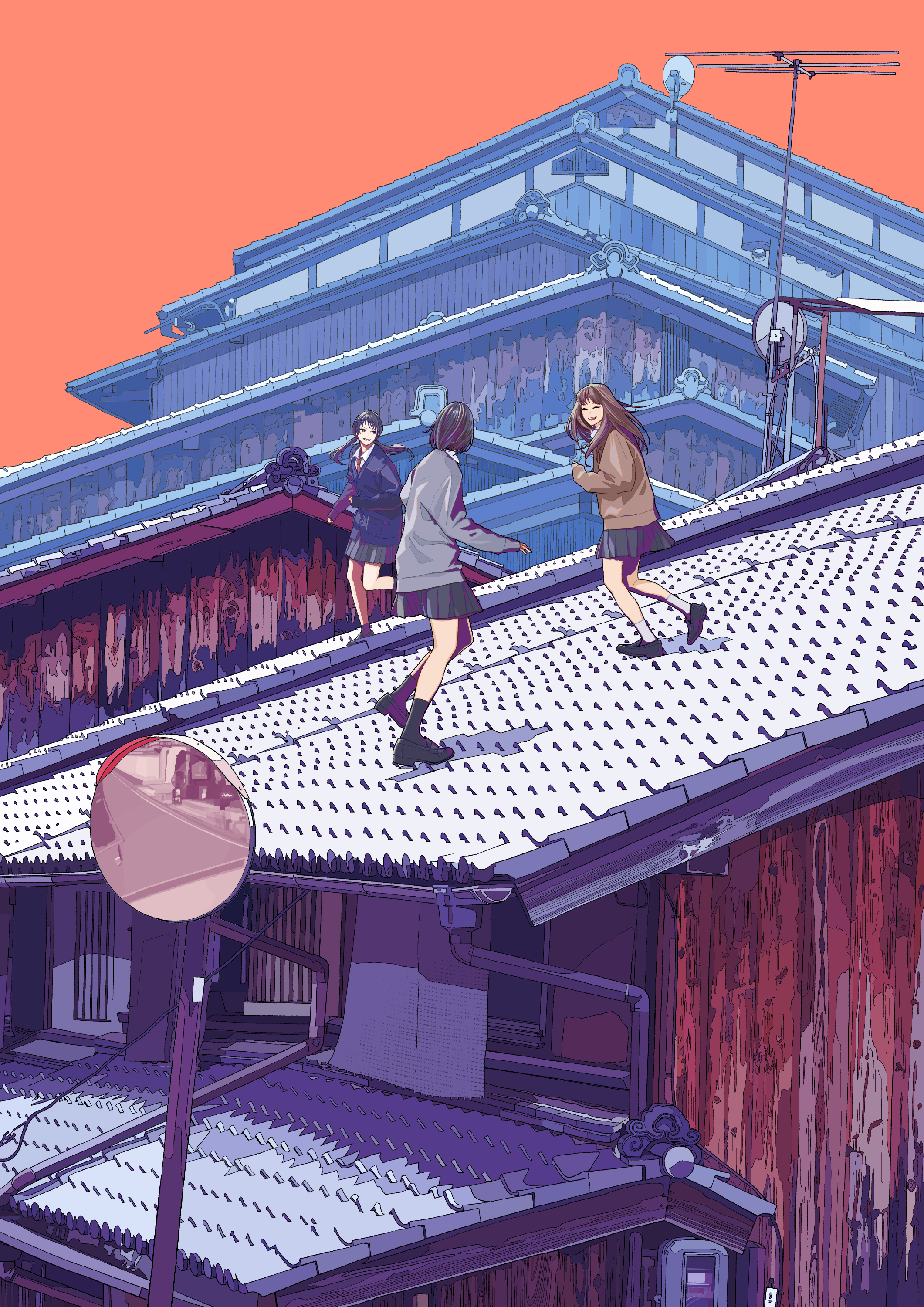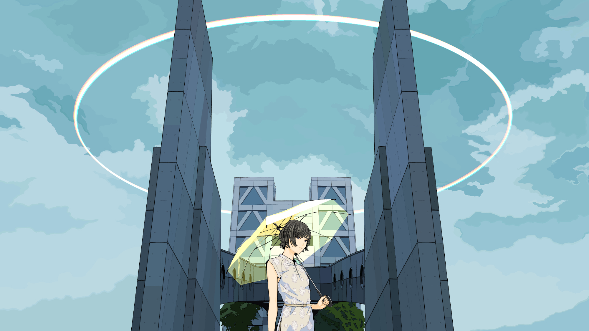 緻密な背景描写と目を引く色彩設計が特徴。