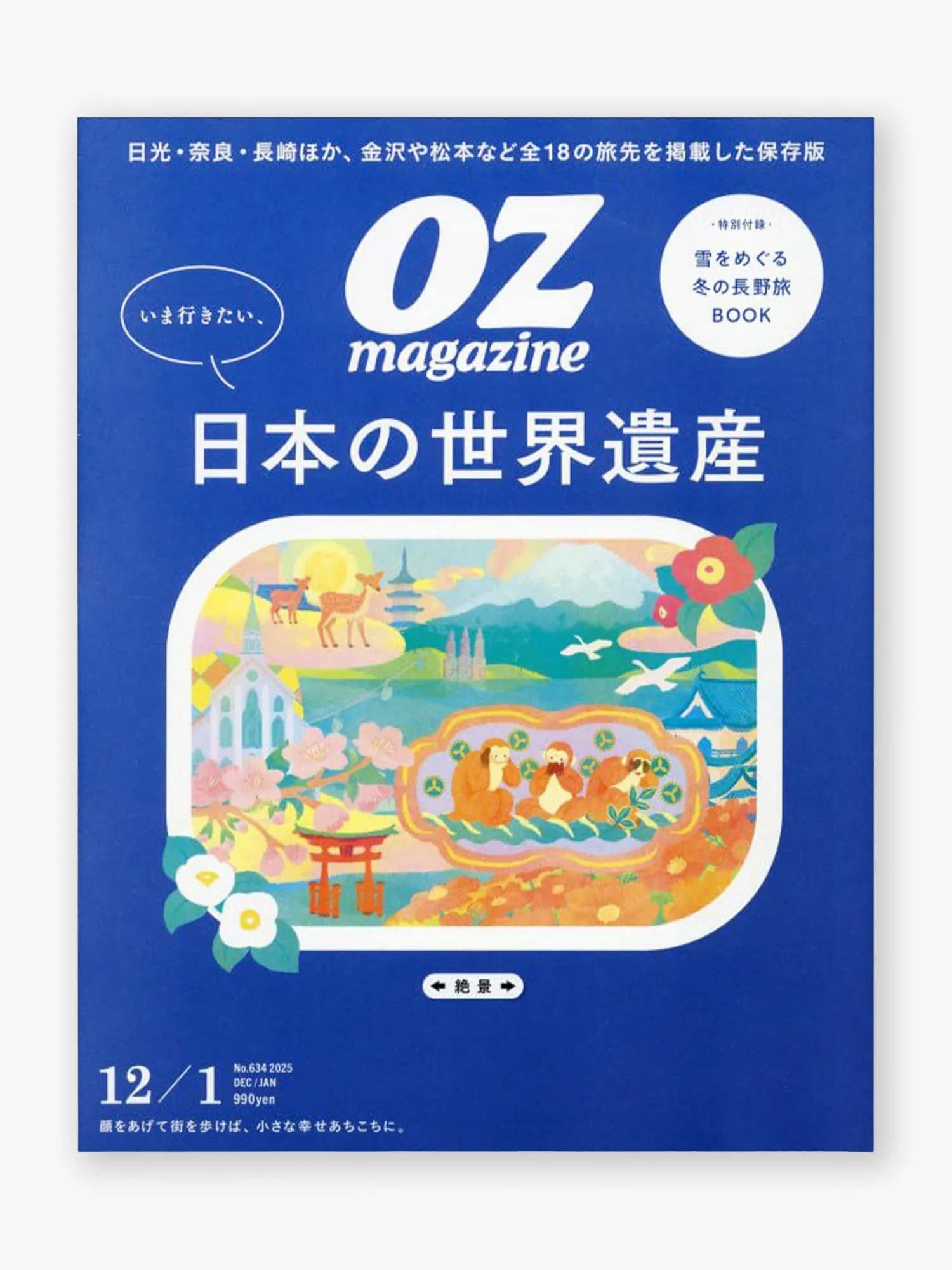Share Book OZmagazine 表紙 COLORFUL CUTE 2026 / 02 / 20 Created by 宮下和 Print 2025年11月12日(水)発売の『オズマガジン』 「日本の世界遺産」特集にて、表紙・裏表紙のイラストを担当させていただきました。 日本各地の世界遺産をモチーフになっています。「電車の車窓から見える風景」をイメージして、旅の先に出会える素敵なもの・素晴らしい体験への期待やよろこびを表現したいと思いながら描きました。 Staff Credit スタッフクレジット 宮下和 Client / スターツ出版株式会社
